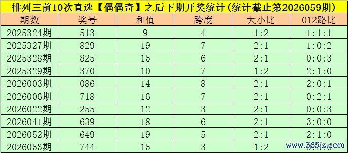 3.在前10次【偶偶奇】类型奖号开出之后,其下期奖号分别开出:533、899、855、300、066、788、255、699、699、744;